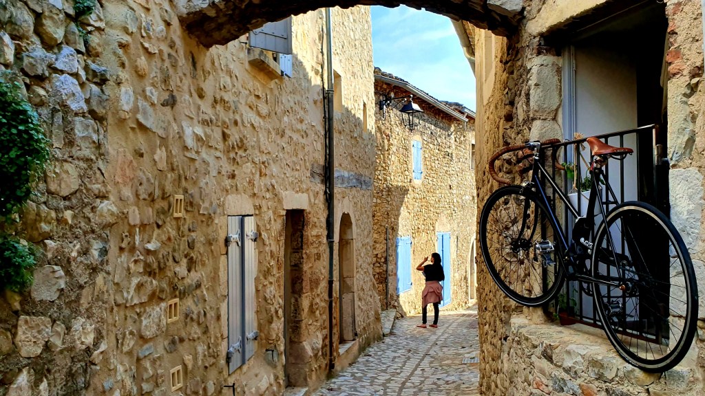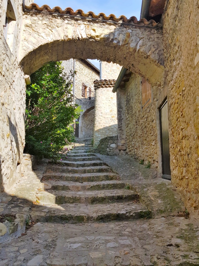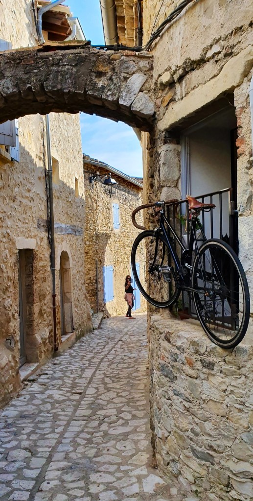 Hicimos un desplazamiento más largo, de aproximadamente 50 kilómetros para llegar a Mirmande, bucólico pueblo ubicado entre el valle del Ródano y las montañas de Vivarais. Incluido muy merecidamente en la clasificación de Pueblos más bellos de Francia,