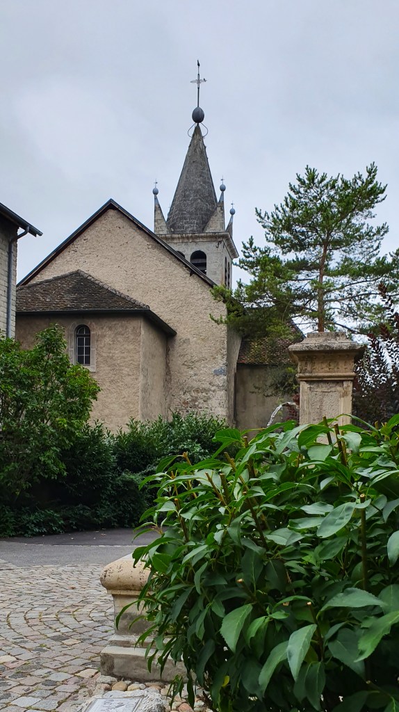 Cuando terminamos de hacer el recorrido, para el que no dedicamos apenas una hora, aún nos quedaba mucho trayecto para llegar al destino de Etroubles, ya en Italia, en el Valle de Aosta. Desde Yvoire lo previsto era llegar hasta la cercana ciudad termal de Thonon les Bains, ubicada a solo 16 kilómetros. Pero considerando todo lo que nos faltaba por recorrer, y que se trata de una ciudad de 35.000 habitantes, decidimos saltarnos este punto del recorrido, para continuar 30 kilómetros hacia el interior, abandonando el lago Lemán y poniendo rumbo a Suiza y los Alpes, previa parada en los pueblos todavía franceses de Abondance y Chatel.