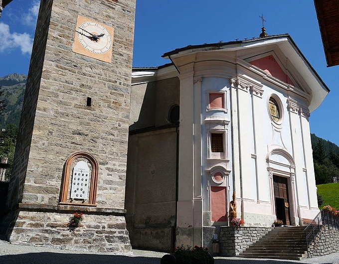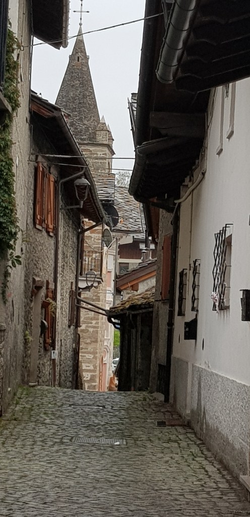 Desde allí nos dejamos ir hasta la zona más baja del pueblo para desde esa zona callejear por la parte baja antes de volver hacia la torre Campanario de Etroubles construida en el siglo XV, a la que está unida la nueva Iglesia di Santa María Assunta que fue levantada en el siglo XIX.