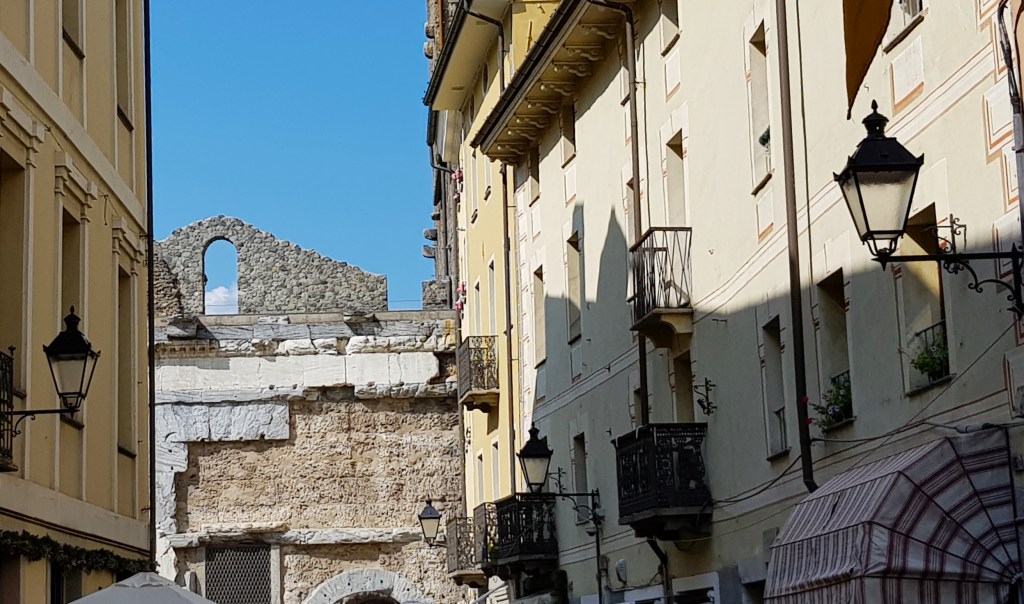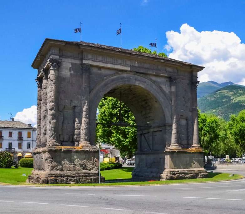 Muy cerca encontramos tres de los principales monumentos de origen romano como son la Puerta Pretoria que era la puerta principal de acceso a la ciudad de Aosta. Se conserva la fachada exterior todavía que aun conserva retazos de mármol. En los lados de la puerta se pueden ver los restos de las murallas romanas.