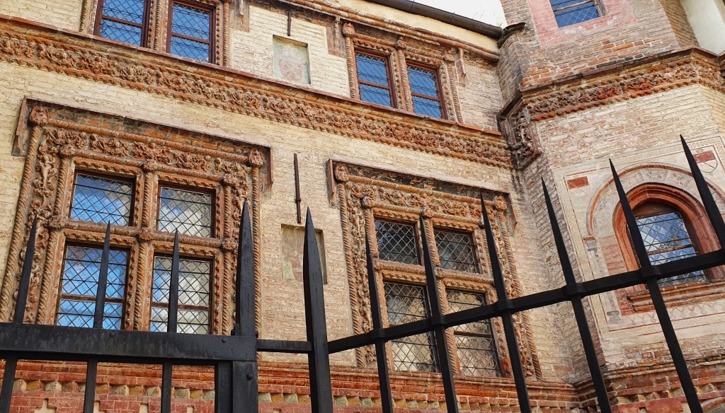 Es muy conocido por su patio interior, con la fuente de la granada y un colorido pórtico, con una serie de frescos de escenas de la vida cotidiana de la Baja Edad Media.