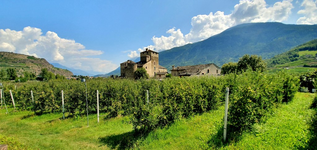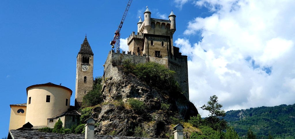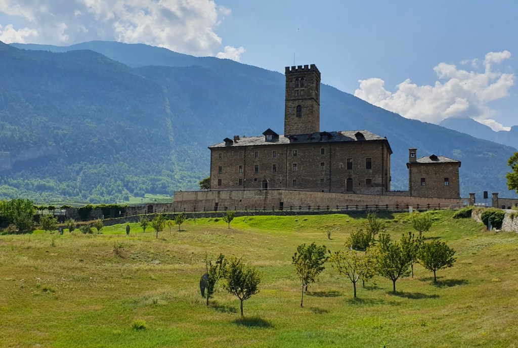 El primero de los castillos que visitamos sobre el Valle de Aosta, el Castillo de Sarre se encuentra a solo 6 kilómetros de la capital, en la localidad de Lalex, sobre una pequeña colina que domina la llanura de Aosta desde la carretera nacional que conduce hacia el mítico Mont Blanc.