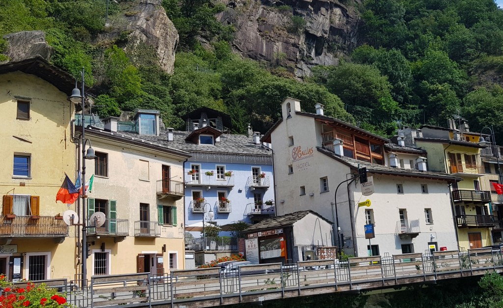 Continuaremos la ruta en dirección al pueblo de Pont Saint Martin en el límite con la región del del Piamonte, es la puerta de entrada del Valle de Aosta. Su monumento más importante es un espectacular puente de época romana construido en el siglo I a.c. Por aquí transitaba la antigua calzada romana que iba a las Galias. Con 23 metros de altura, 5 de anchura, en un solo tramo de piedra, hasta el año 1831 era el único forma de cruzar para los viajeros que se dirigían al valle.