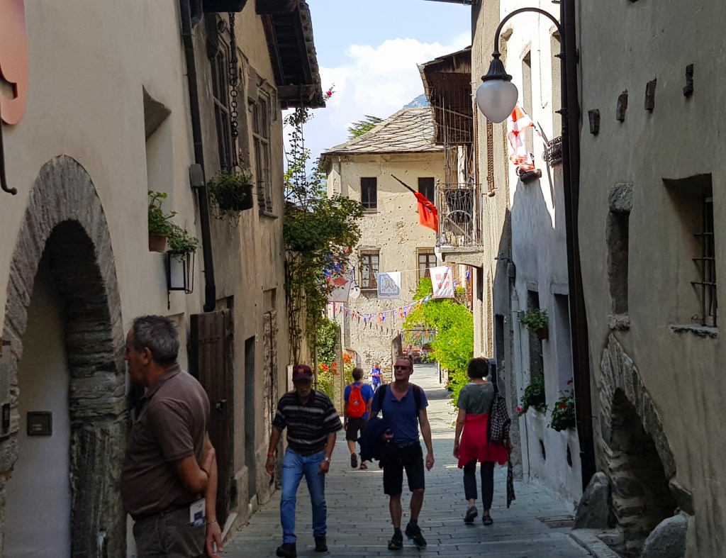 Llegaremos hasta la Vía Croix de Ville. En esta calle se respira un ambiente tranquilo, bellos edificios residenciales, alguna que otra iglesia y la simbólica Cruz de Calvino que erigida en el año 1541 conmemora la expulsión de el reformista protestante Calvino que llegó al Valle de Aosta en el año 1536 para convertir a sus habitantes al protestantismo, así como para unirse a la confederación suiza.