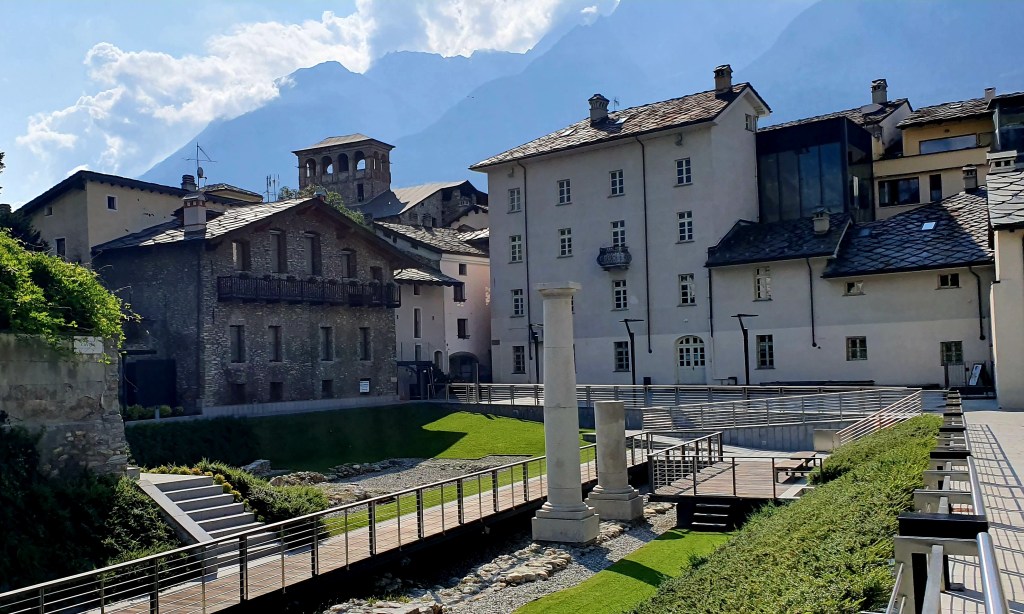 Aosta es conocida como la «Roma de los Alpes» por los varios monumentos romanos que se encuentran en su recinto histórico. Fue fundada por los romanos en el año 25 a.C. con el nombre de Augusta Praetoria, en el centro de las principales calzadas romanas que llevan a Francia y Suiza. Lugar de paso de la Vía Francígena que históricamente llevaba de Canterbury (Inglaterra) hasta Roma. Esta vía en su recorrido por el Valle conduce desde Aosta hasta Pont Sant Martin.