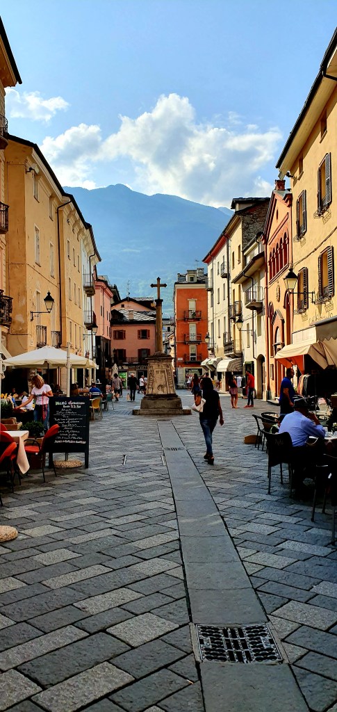 La ciudad de Aosta, animada y vital nos ofrece bellas postales y varios importantes monumentos algunos de ellos procedentes de las pretéritas épocas romanas. Su entorno, rico en paisajes montañosos, se ve algo deteriorado por la masificación de casas que crecen como setas en cualquier rincón, en muchas ocasiones con un sentido estético más que cuestionable. La huella humana también deja su impronta con grandes tendidos eléctricos que ayudan a estropear el paisaje.