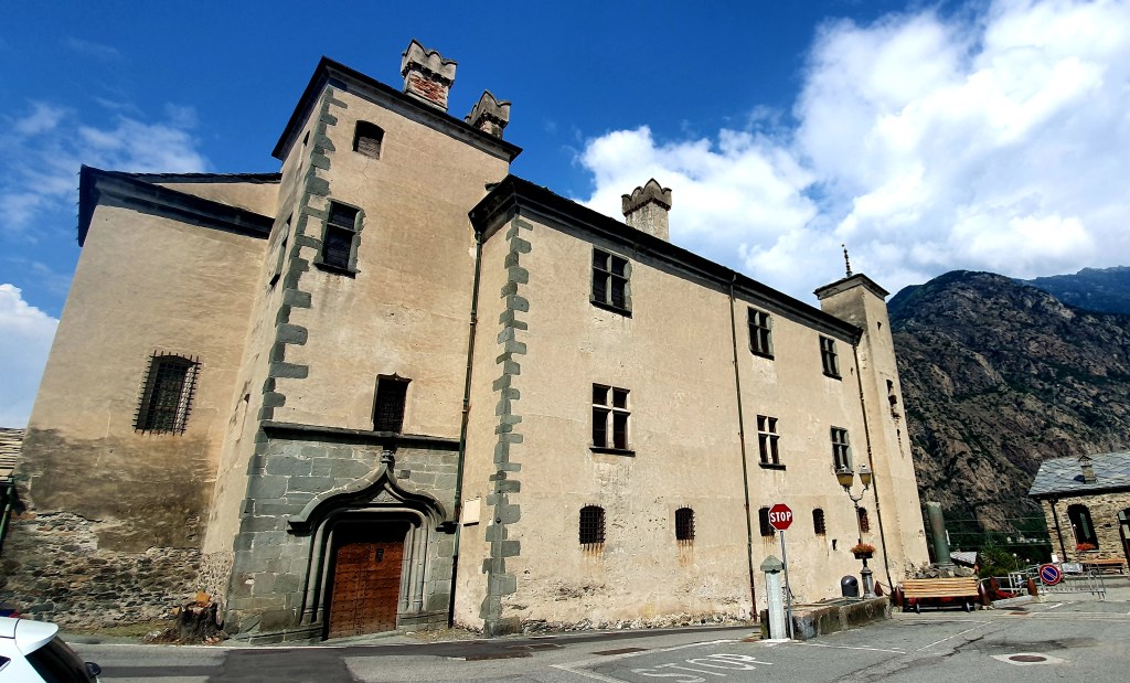 Un castillo ubicado en el pueblo del mismo nombre, se dice que es único en su género, combinando en su en su aspecto exterior el estilo propio de épocas medievales y barrocas, en las que influyeron las diferentes iniciativas arquitectónicas de la familia Challant, propietarios que a lo largo de los siglos han adaptado el edificio a las necesidades y gustos de cada una de las épocas.