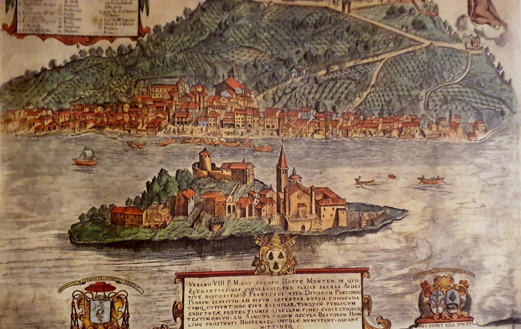 Esta isla dice la leyenda que estuvo habitada por dragones hasta que en el siglo IV San Giulio construyó una iglesia paleocristiana que fue reconstruida en la Edad Media y remodelada a lo largo de los siglos, siendo hoy en día uno de los monumentos románicos más importantes del Piamonte.