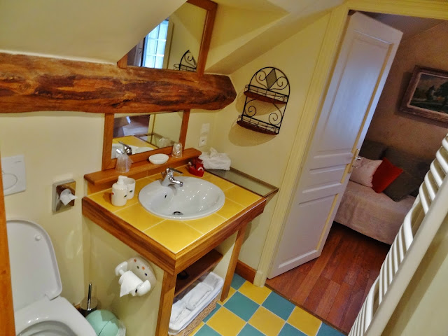 La casa esta muy bien decorada, con detalles muy cuidados en las habitaciones y zonas comunes. Nosotros dormimos en la Habitación Margaux, que se trata de un amplio espacio individual en la que hay a su vez tres divisiones, que son la habitación, el baño y como es costumbre en muchos lugares en Francia, el cuarto del retrete de forma separada. Todo ello limpio, amplio y perfectamente decorado. Detalles en la habitación como té, agua para calentar, cafés, etc.